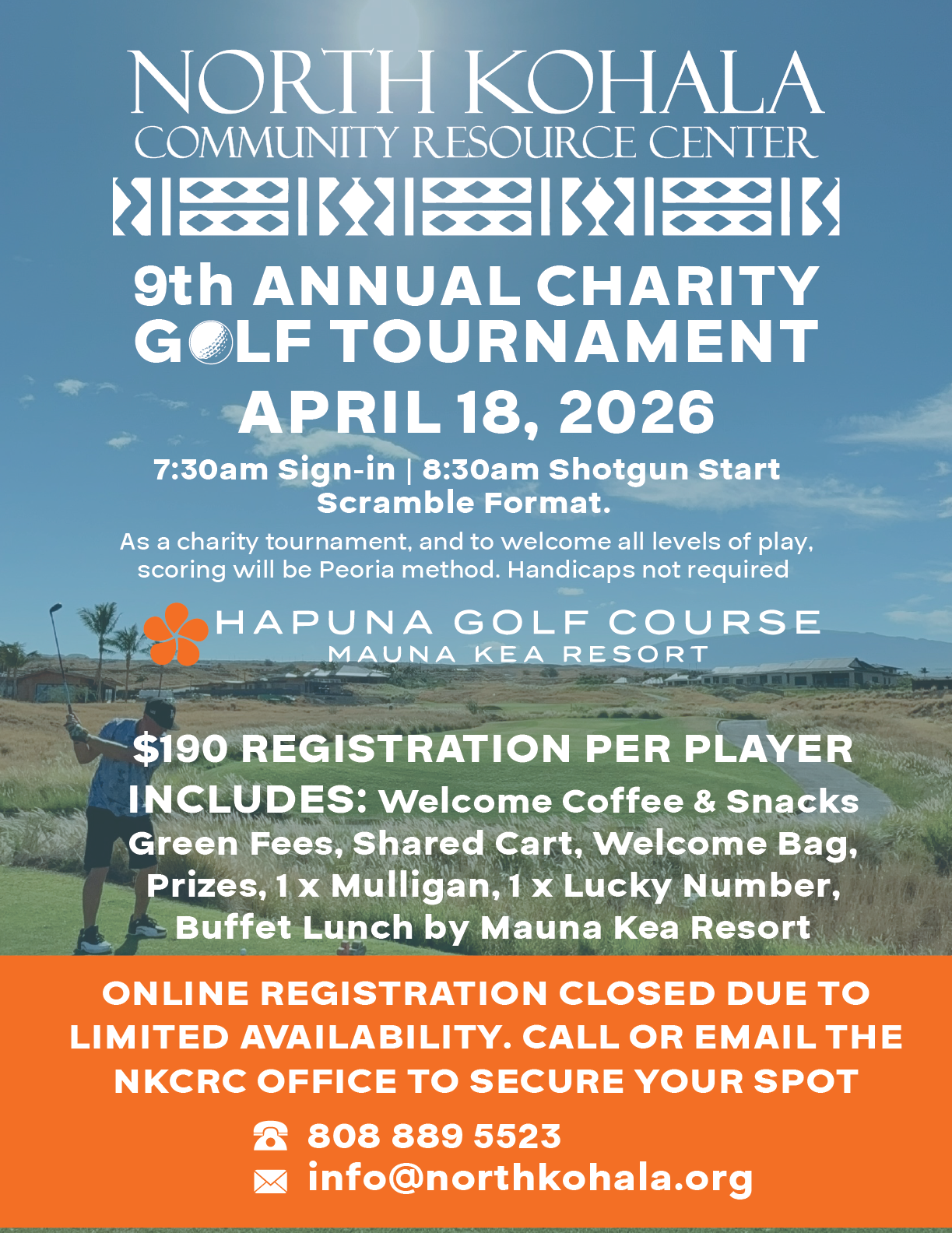 DUE TO LIMITED AVAILABILITY, WE ARE CLOSING ONLINE REGISTRATION FOR OUR 9TH ANNUAL GOLF TOURNAMENT.